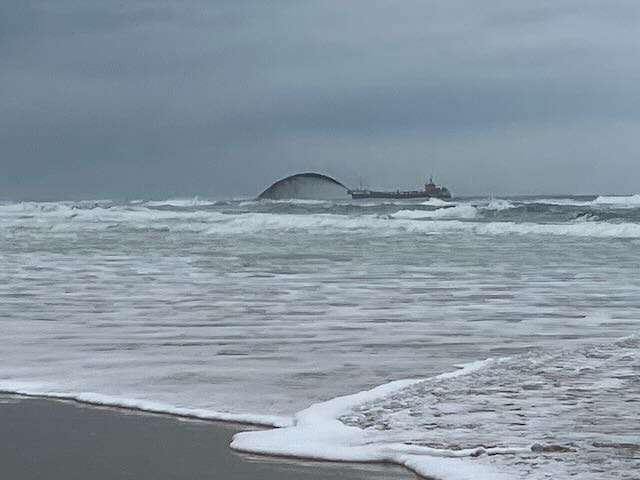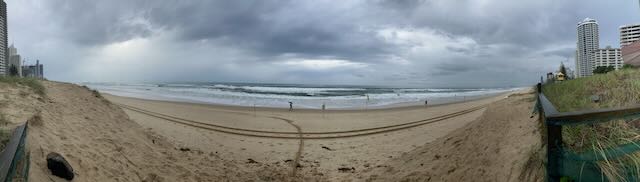 Ein Strand, dem man stundenlang entlang gehen kann. Allerdings wurde bei einem seltenen tropischen Sturm sehr viel Sand ins Meer geschwemmt, den die Menschen nun mühsam wieder aus dem Meer zu pumpen versuchen.