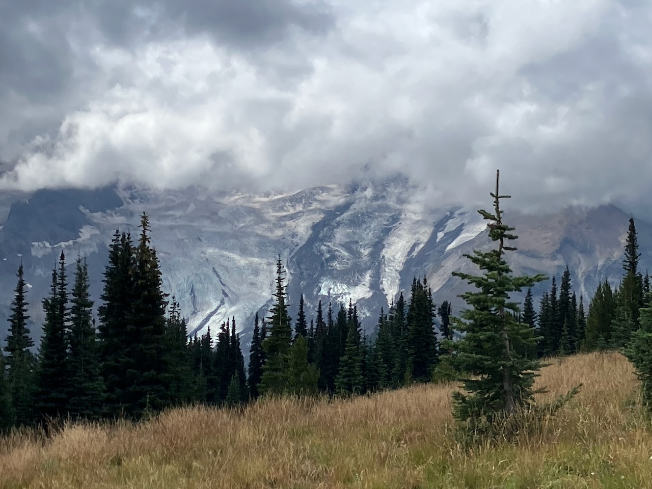 Wieder bei der Ranger Station hat sich der Rainier diskret verhüllt. Wir besuchten noch die geologische Ausstellung, welche vom violenten Kampf zwischen Lava und Gletscher erzählt, und lauschten dem interessanten Vortrag einer jungen Rangerin zu historischen und heutigen Besteigungen des Berges. Jedes Jahr versuchen es 10'000, wovon 50% scheitern.