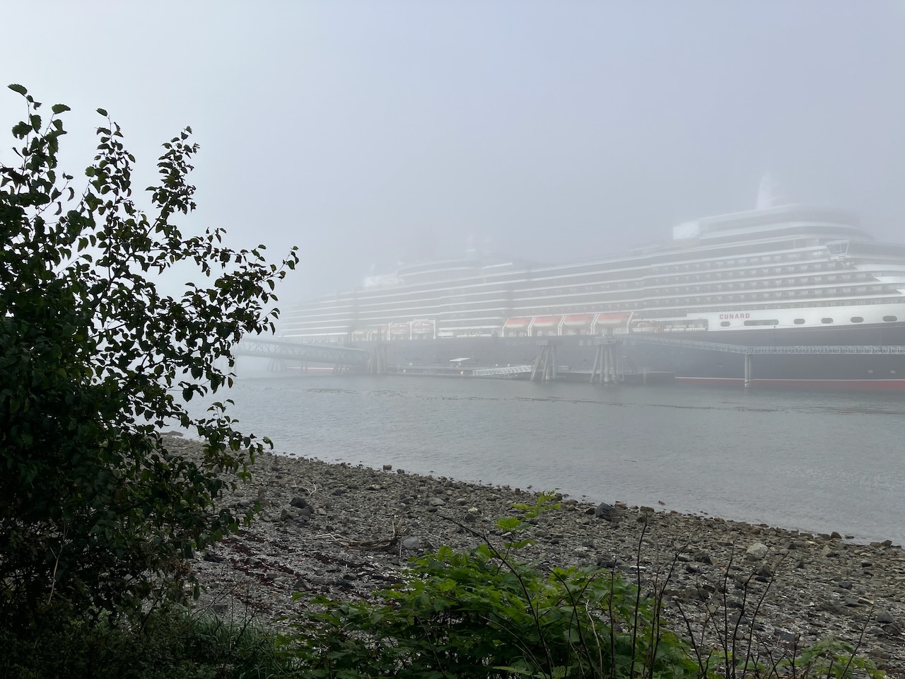 ... um wieder zu unserer Queen Elizabeth zu gelangen, welche wie ein Geisterschiff im Hafen liegt.