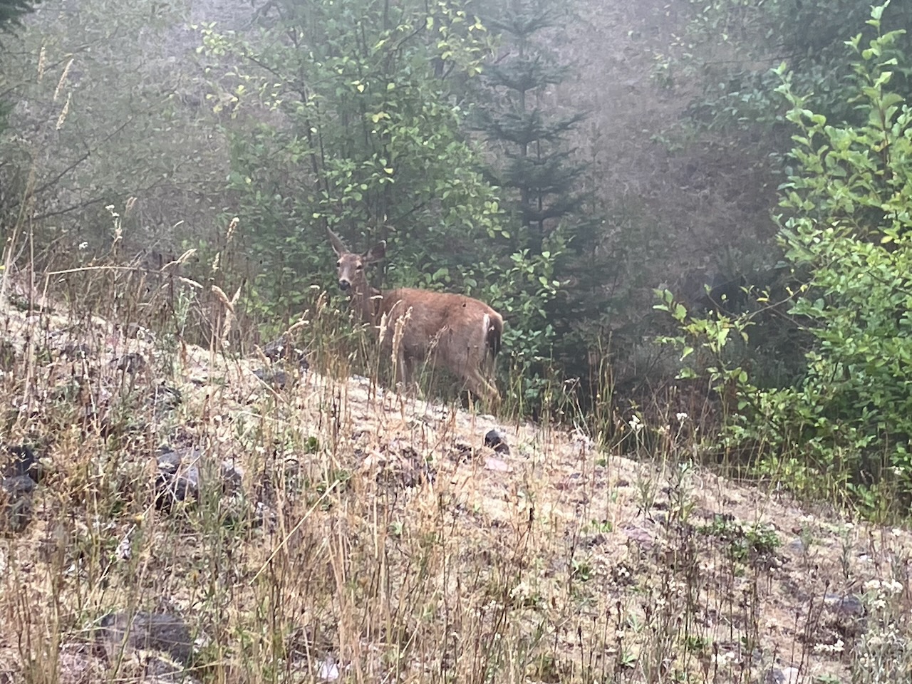 ... dafür sahen wir dieses schöne Tier im Nebel.