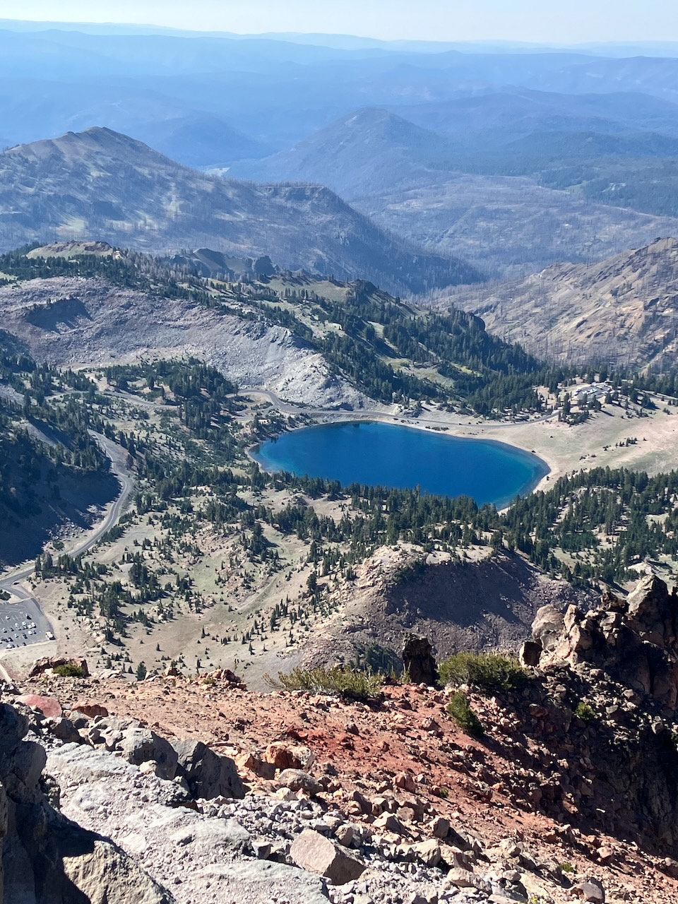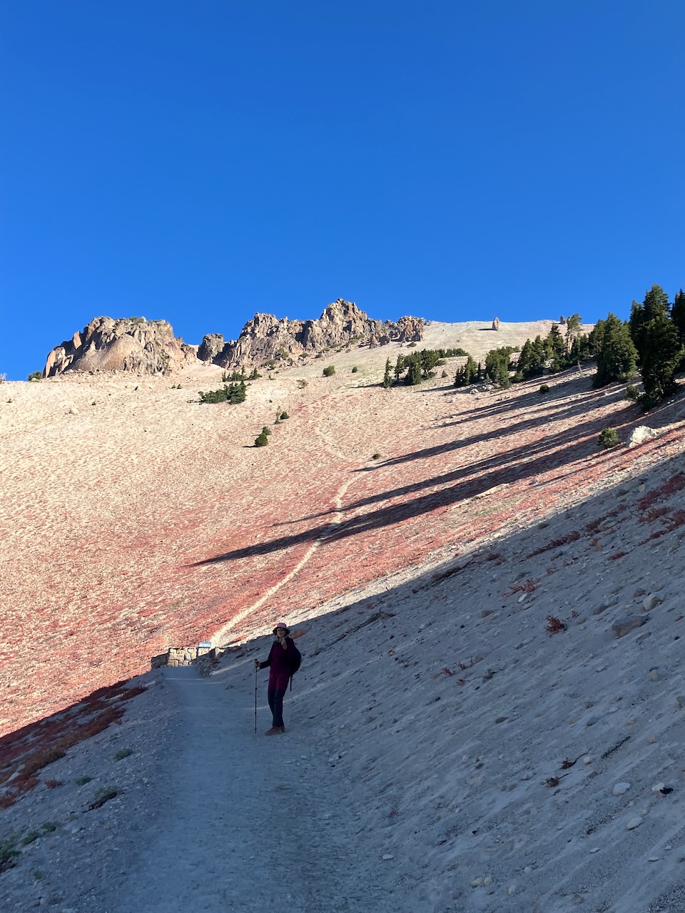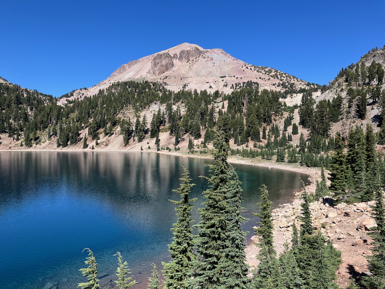 Am Sonntag war Grand Finale von Downton Abbey – aber heute! – unser Grand Finale! – Lassen Peak! – wir kommen! Dieser schöne See ist der Helen Lake, benannt nach der ersten weissen Frau, welche den Berg 1864 erklomm.