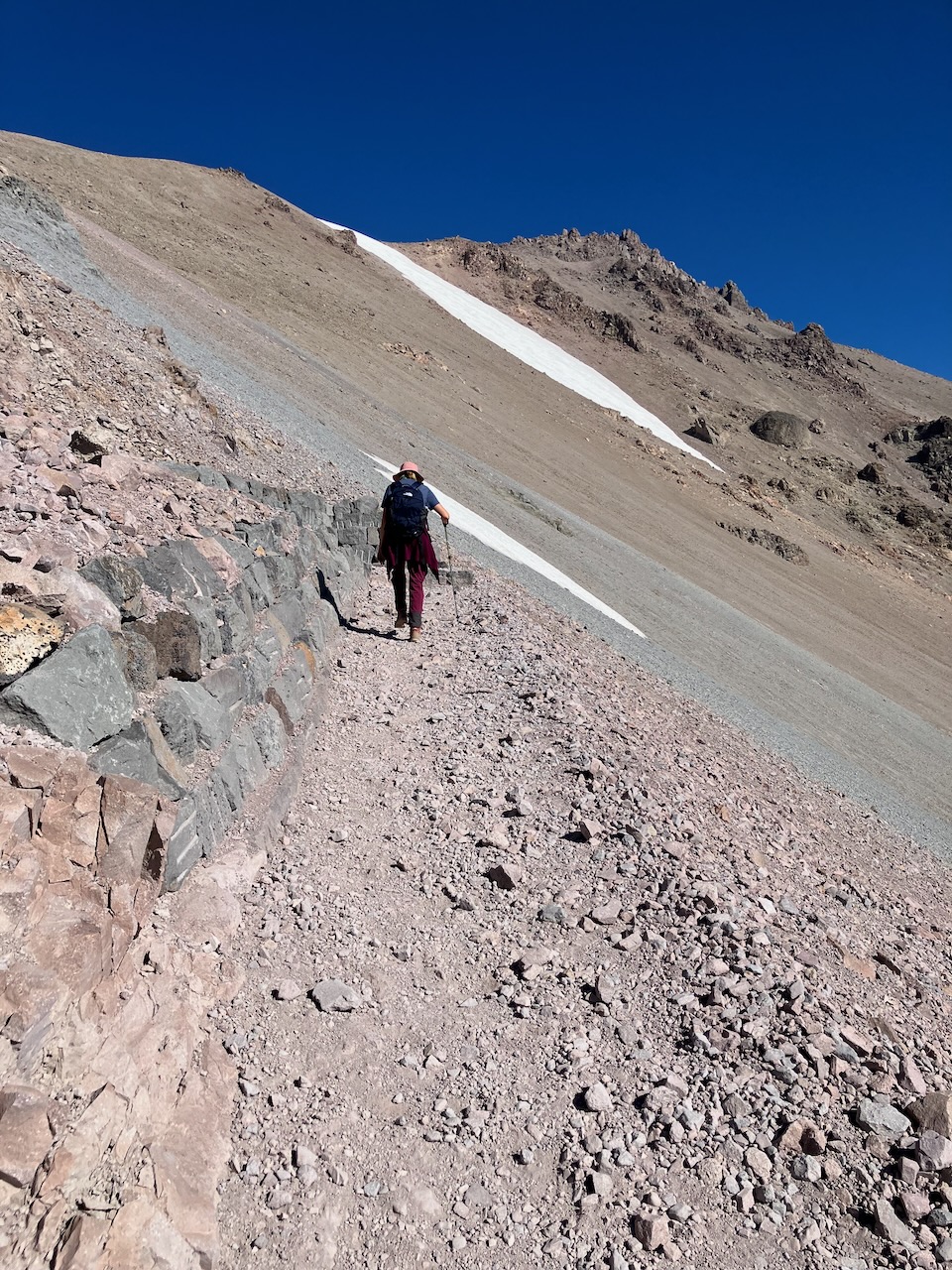 Der nach unseren Begriffen fast autobahnartige Bergweg zieht seine Zickzacke stoisch durch die steilen Geröllhalden – alles Lavagestein.