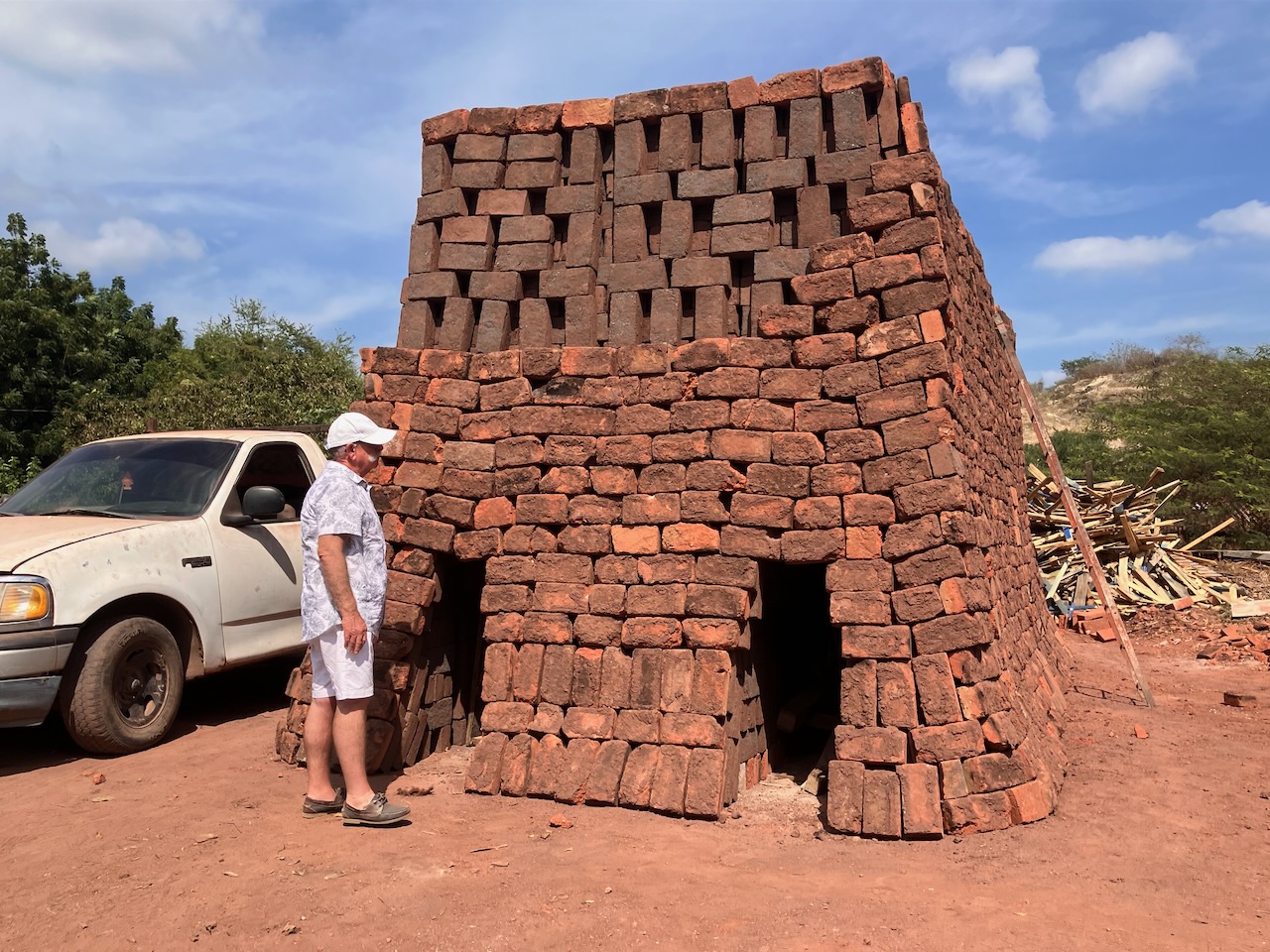 Nachdem sie 2 – 4 Tage getrocknet wurden, brennt man die Backsteine in diesem grossen Ofen, damit sie hart und durabel werden.