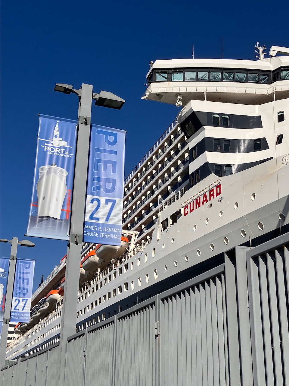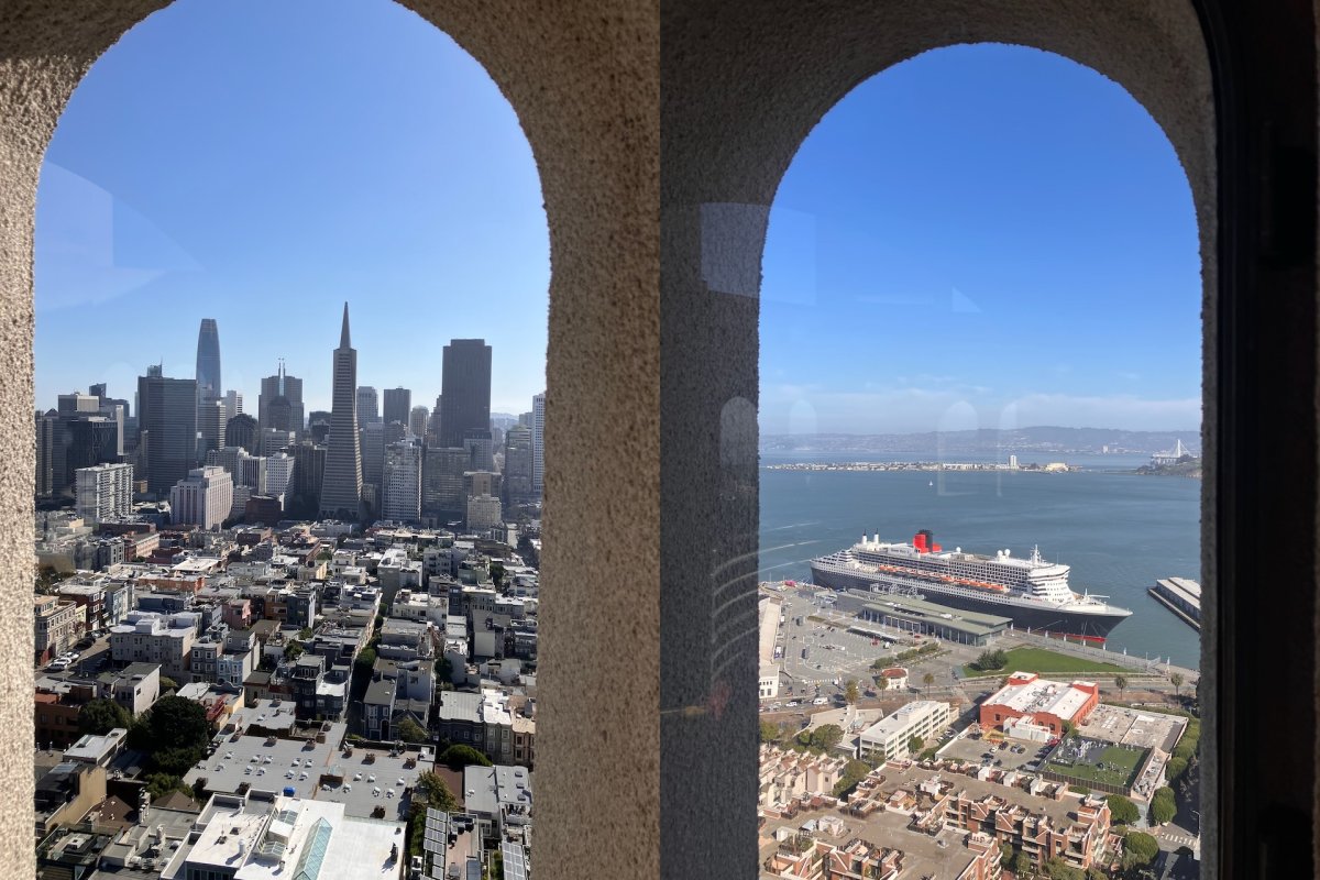 Das Titelbild zeigt die Bay Bridge, welche viel grösser ist, als die Golden Gate, aber auch später gebaut wurde. Es war geplant, den Tag auf dem Schiff zu verbringen, statt sich in das Gewühl der Stadt zu stürzen. Jedoch rief der Coit Tower, oberhalb des Hafens gelegen.