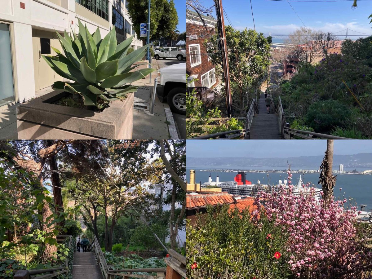 Der steile Weg hinauf auf den Telegraph Hill führte über hunderte Treppenstufen.