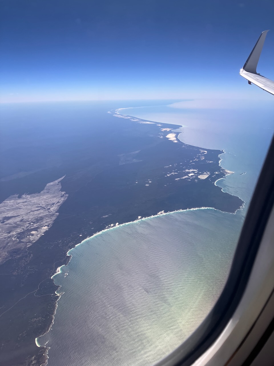 Gute vier Stunden nach dem Start in Sydney hat das Flugzeug die grosse Australische Bucht (Hintergrund) überflogen und trifft auf das Südufer von Westaustralien.