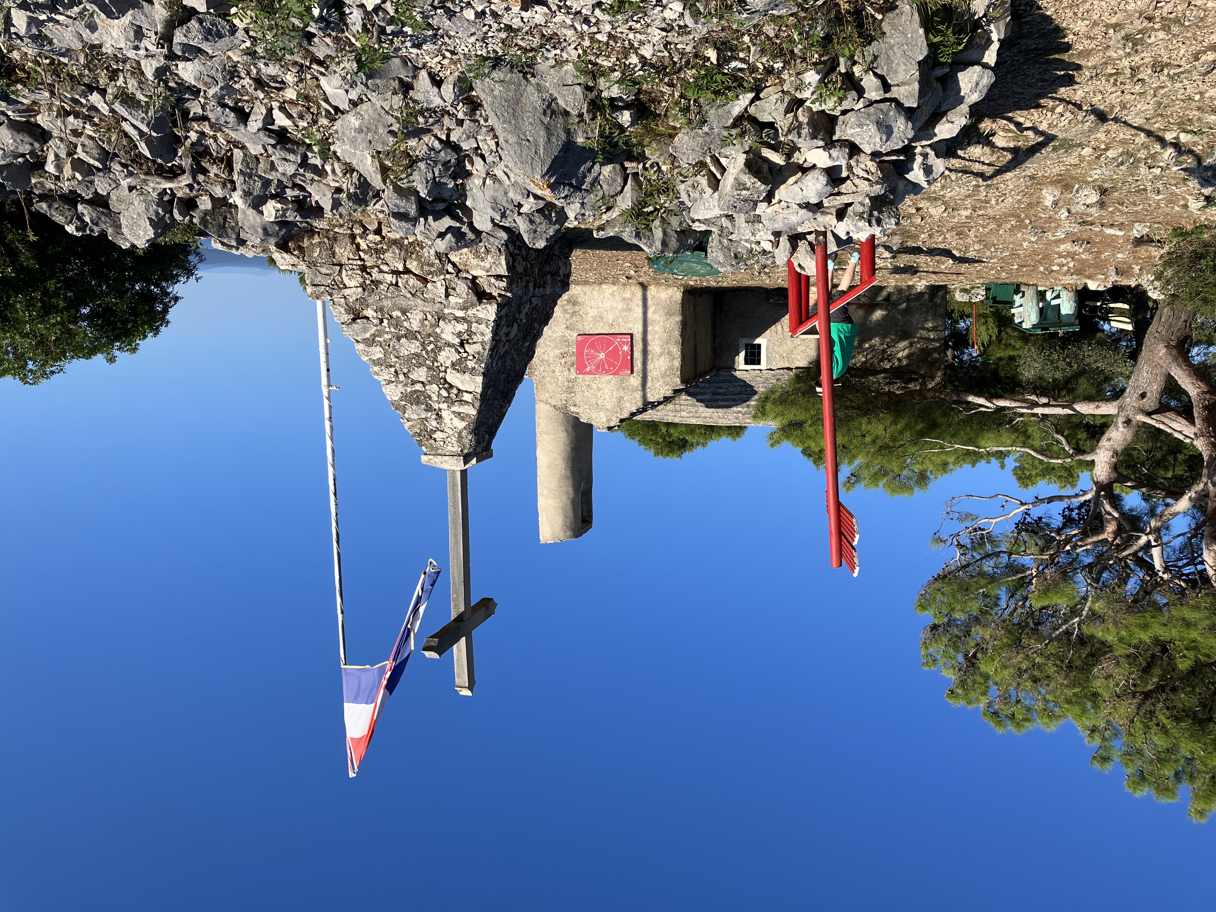 Nach dem Frühstück ging es vom lustig verzierten Bänklein des Touristenbüros hinauf auf den Berg des heiligen Ivan (Johannes) mit Kapelle.